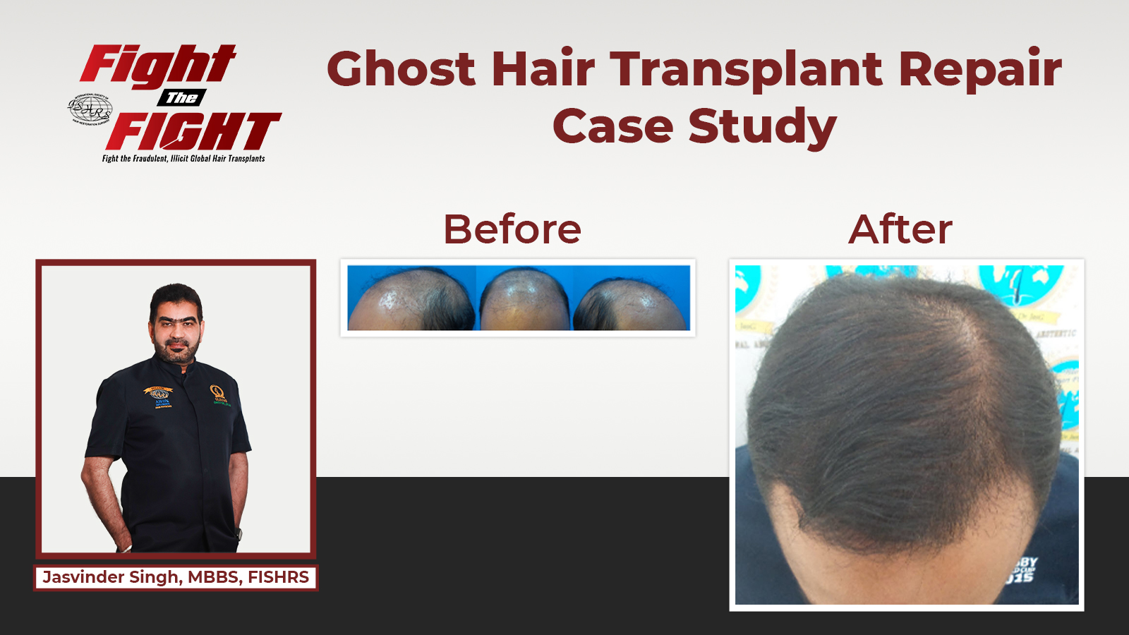 กรณีศึกษาการแก้ไขการปลูกถ่ายผม: พื้นที่ผู้บริจาคถูกเก็บเกินจากคลินิกตลาดมืด